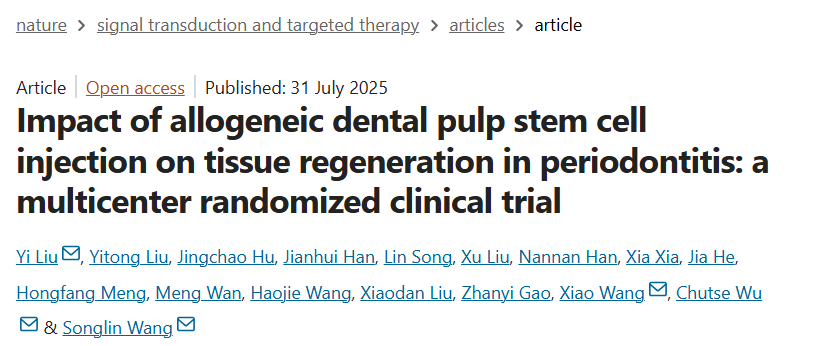 突破性进展!牙髓干细胞治疗牙周炎II期临床试验完成全部入组!!!